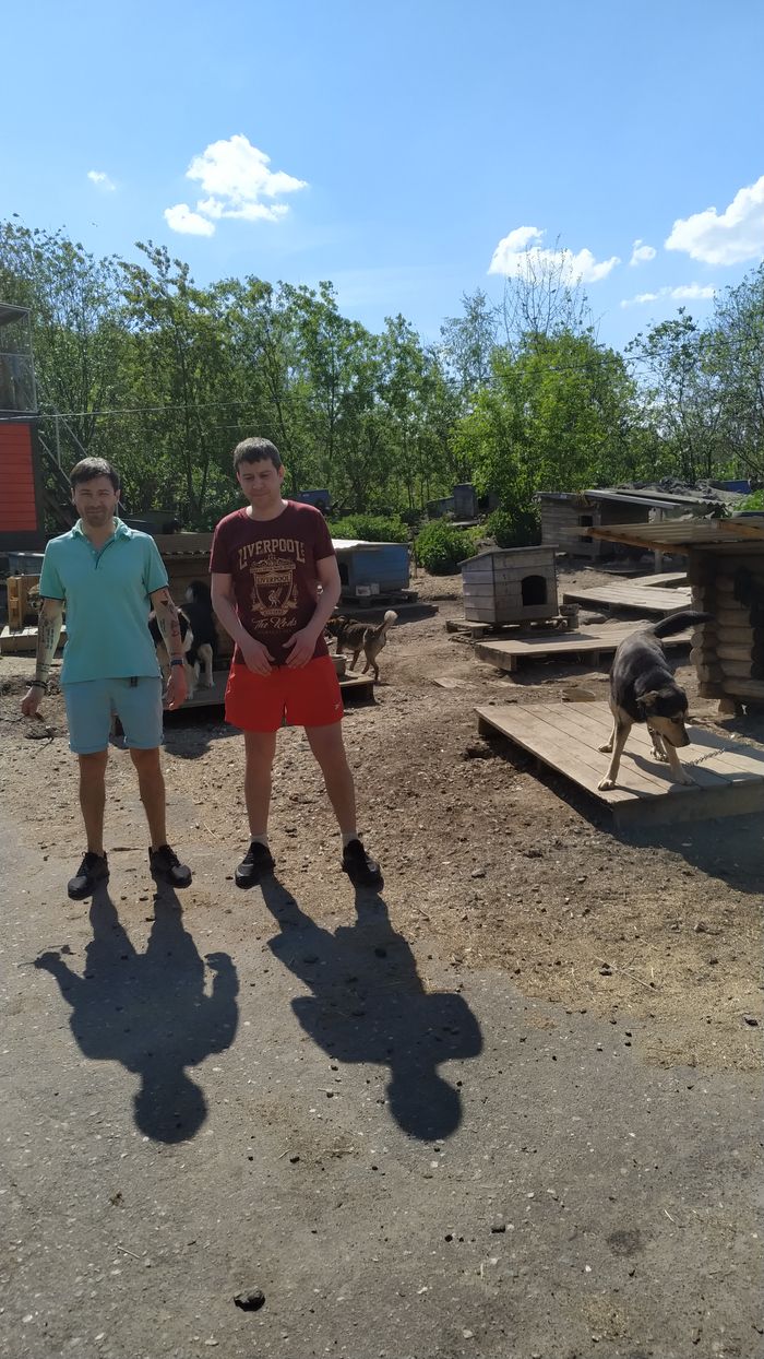 В помещение, в котором находились кошки, нам зайти не разрешили, поэтому мы видели только собак. Собаки заселили всю территорию: очень много будок, всяких разных домушек, клеток, в которых находятся самые разные песики, самых разных пород и самых разных размеров. Многих мы гладили, фотографировались с ними и просто разговаривали. На территории очень шумно, поскольку собаки постоянно лают, не все, но многие. По численности их там около 750 собак. Морды у всех добрые, приветливые. И даже те, которые лают, на самом деле просто здороваются, просто общаются и просто хотят домой! Кошек около 100, но они все в помещении и туда нас не пустили.